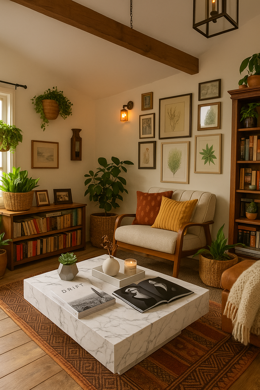 This large coffee table exemplifies modern, heavy geometry with its substantial square or rectangular form and deep sides that create a monolithic, box-like appearance. Crafted from high-quality white marble—likely Carrara—with flowing gray and charcoal veining, the entire piece, including the edges, is seamlessly clad in marble for a clean, unified look. Its low, bold profile contrasts beautifully with surrounding warm wood tones, earth-toned rugs, and textured textiles, making it a striking centerpiece that introduces a sense of contemporary luxury and sculptural presence to eclectic or rustic spaces.